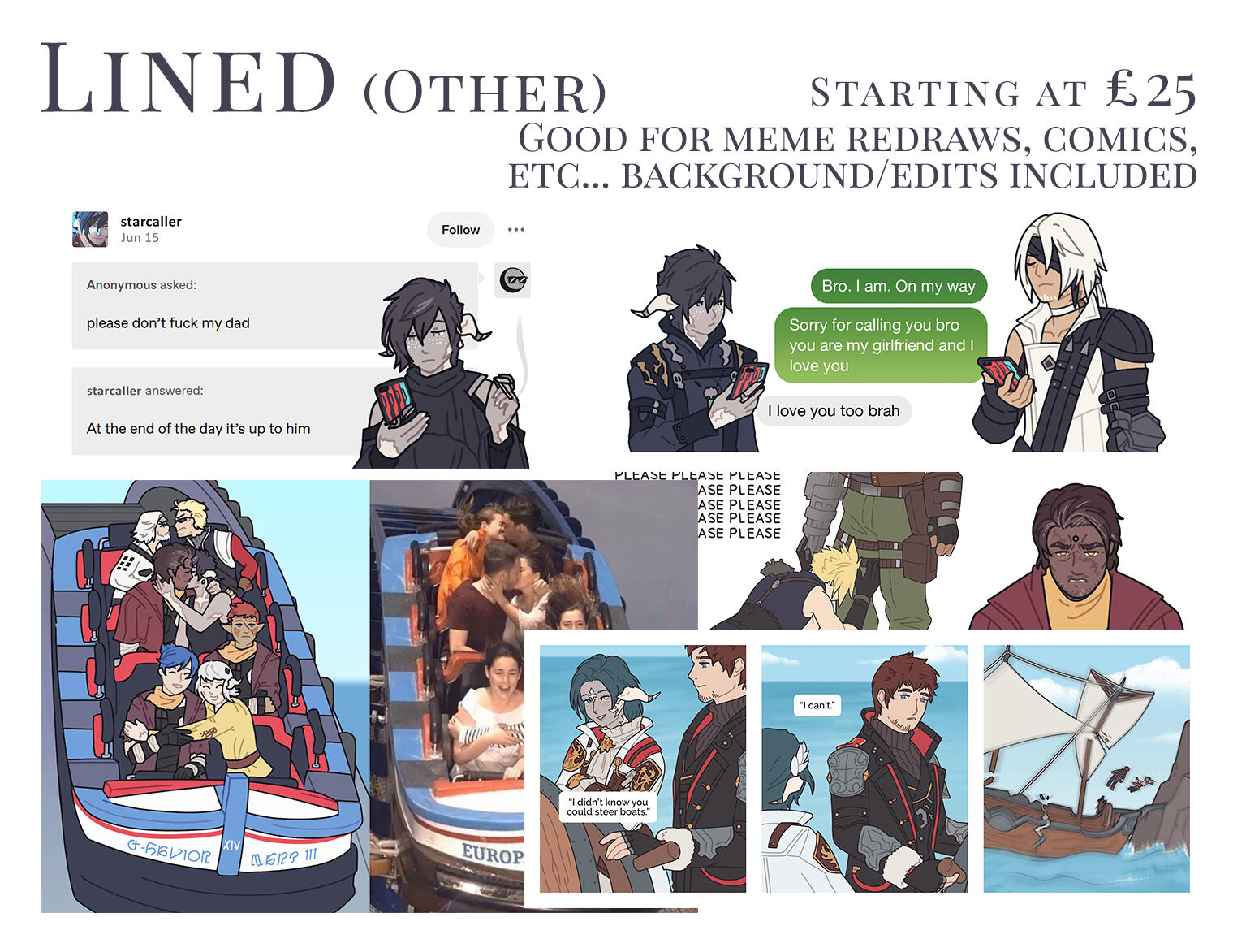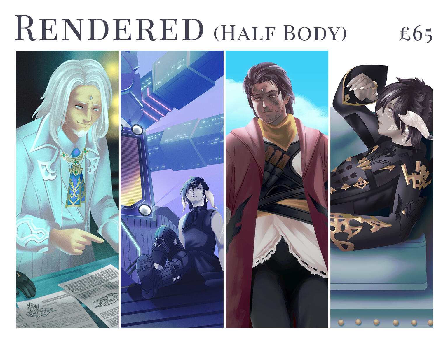 Unless otherwise stated, visual references are required for all commission types. Artwork does not include character design services.