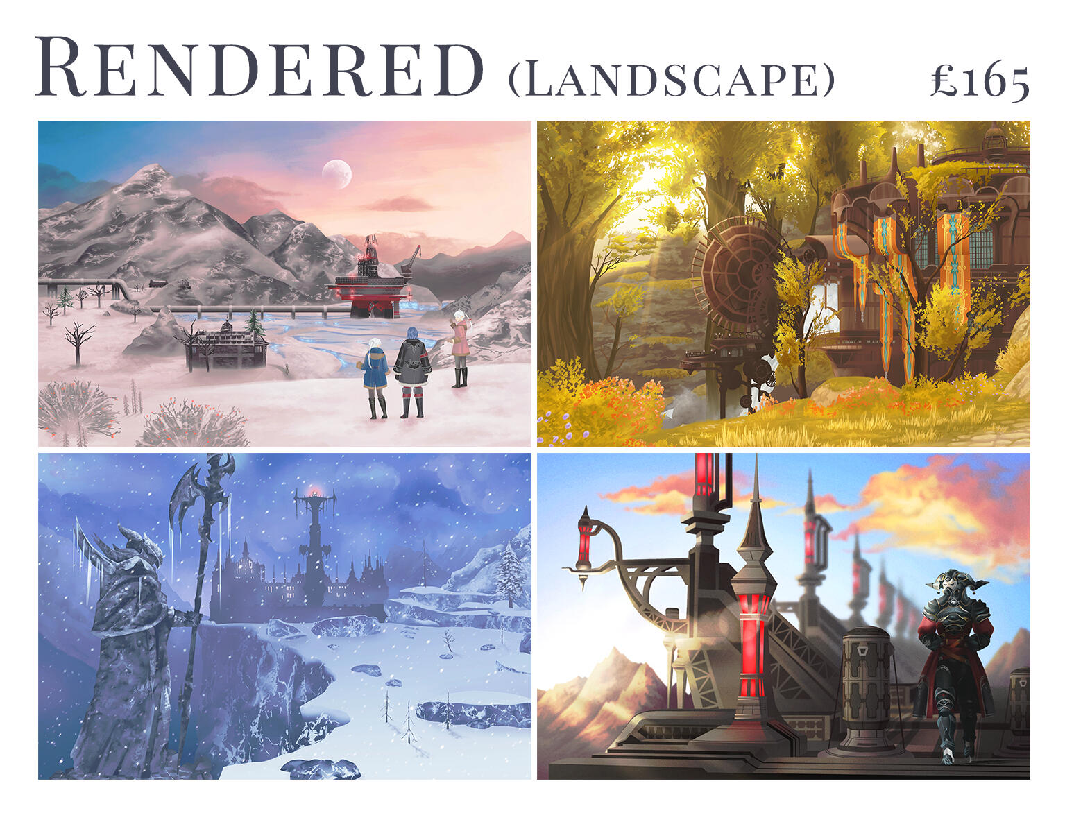 I really enjoy painting scenery and landscapes, as well as character-focused art! Here is a selection of some of my favourite recent pieces.You can click on each image to view it in full size.