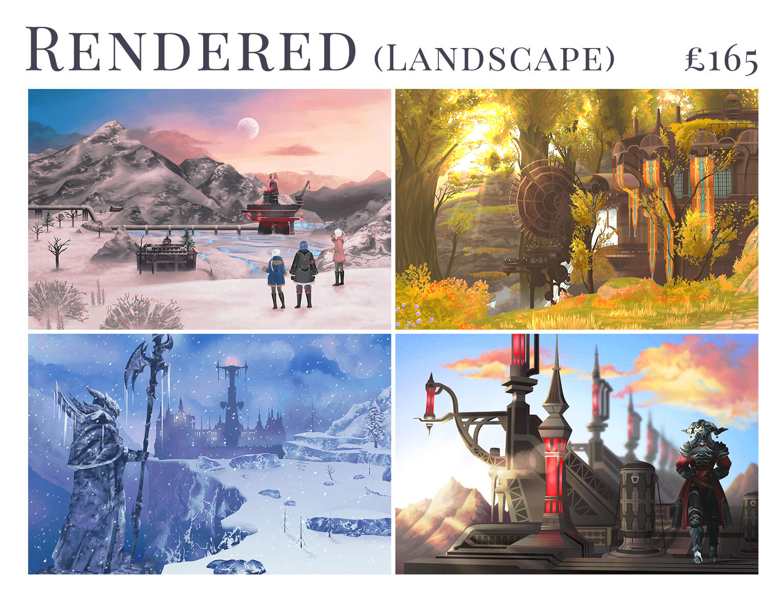 I really enjoy painting scenery and landscapes, as well as character-focused art! Here is a selection of some of my favourite recent pieces.You can click on each image to view it in full size.